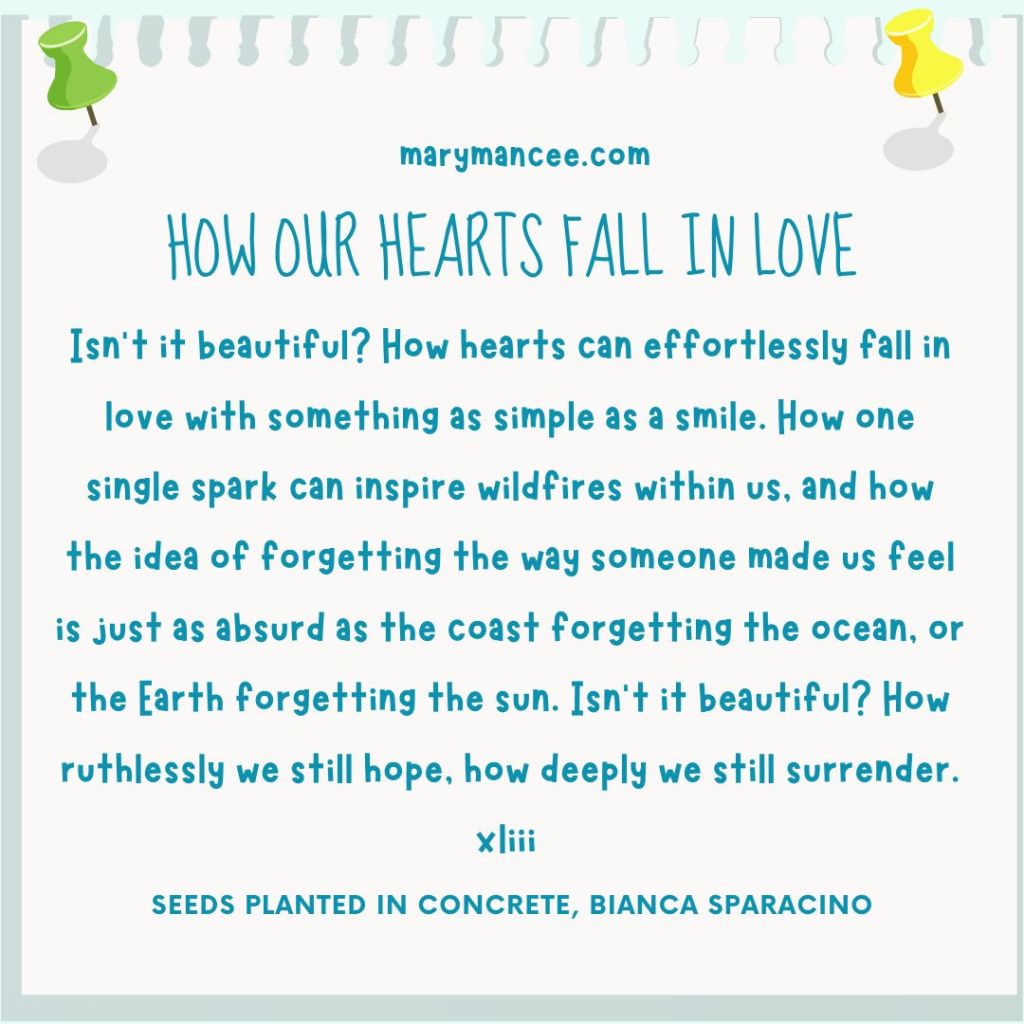 Isn’t it beautiful? How hearts can effortlessly fall in love with something as simple as a smile. How one single spark can inspire wildfires within us, and how the idea of forgetting the way someone made us feel is just as absurd as the coast forgetting the ocean, or the Earth forgetting the sun. Isn’t it beautiful? How ruthlessly we still hope, how deeply we still surrender.