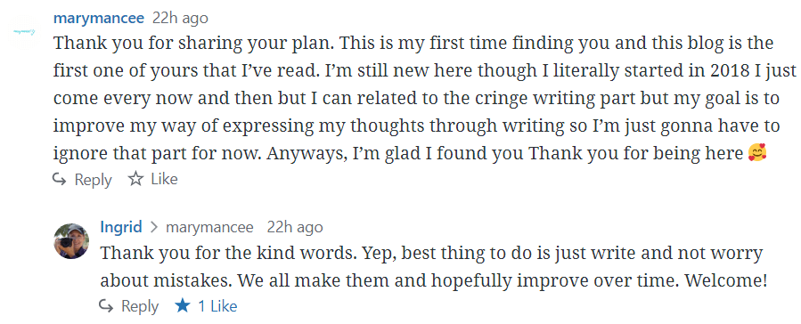 This is a note that in my 30 Day Writing journey, I have come across someone so resonating and inspiring. Here’s to more writers like @Ingrid. I am happy and grateful. Thank you for the inspiration.